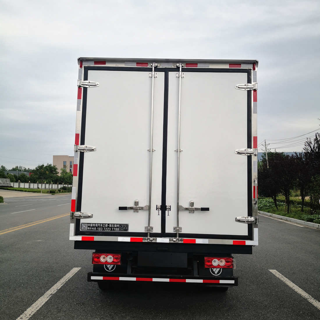 1.選裝導流罩;選裝兩側單、雙、無側開門;選裝同等功率制冷機組,外觀形狀可不同.2.ABS型號及廠家對應關系:液剎:ABS系統型號:YF8;生產企業:武漢元豐汽車電控系統有限公司.氣剎:ABS系統型號:ABS-VI.E;生產企業:廣州瑞立科密汽車電子股份有限公司.3.F2.8NS6B131、F2.8NS6B156發動機最大凈功率分別為93kw、112kw.4.選裝前圍及前部燈具,前下視鏡為選裝件可不裝,選裝排半駕駛室,排半駕駛室對應貨箱內部長度為3700mm,單排駕駛室對應貨箱內部長度為4080mm.5.側防護的連接方式是與貨箱橫梁螺栓連接,側防護材料為冷板B-2.0/20,選裝材料為20號鋼的側防護、選裝鋁合金6061-T6側防護.后防護連接方式是與車架縱梁螺栓連接,后下部防護裝置材料為Q345A,選裝材料為AL6082-T6的后下部防護裝置,后部防護裝置截面尺寸100×50mm,后防護距離車輛離地高度470mm;選裝后部防護選裝圓形管Q345A,裝置截面尺寸為直徑120mm,離地高度:485mm.6.發動機F2.8NS6B131對應油耗值為10.8;7.貨廂頂部封閉,不可開啟.選裝液壓尾板,液壓尾板質量為350kg,液壓尾板收起狀態下的水平長度為280mm.