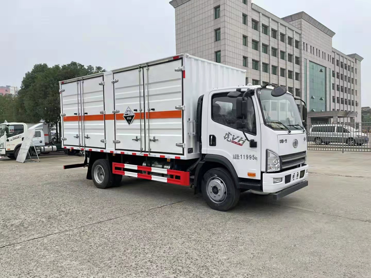 腐蝕品運輸都少不了專用的車輛,該車在危險品車中被劃分為八類危險品。為了選擇更方便,程力專汽特為您定制了解放國六5米1帶雙開雙側門腐蝕性物品廂式運輸車,以下是詳細配置介紹: