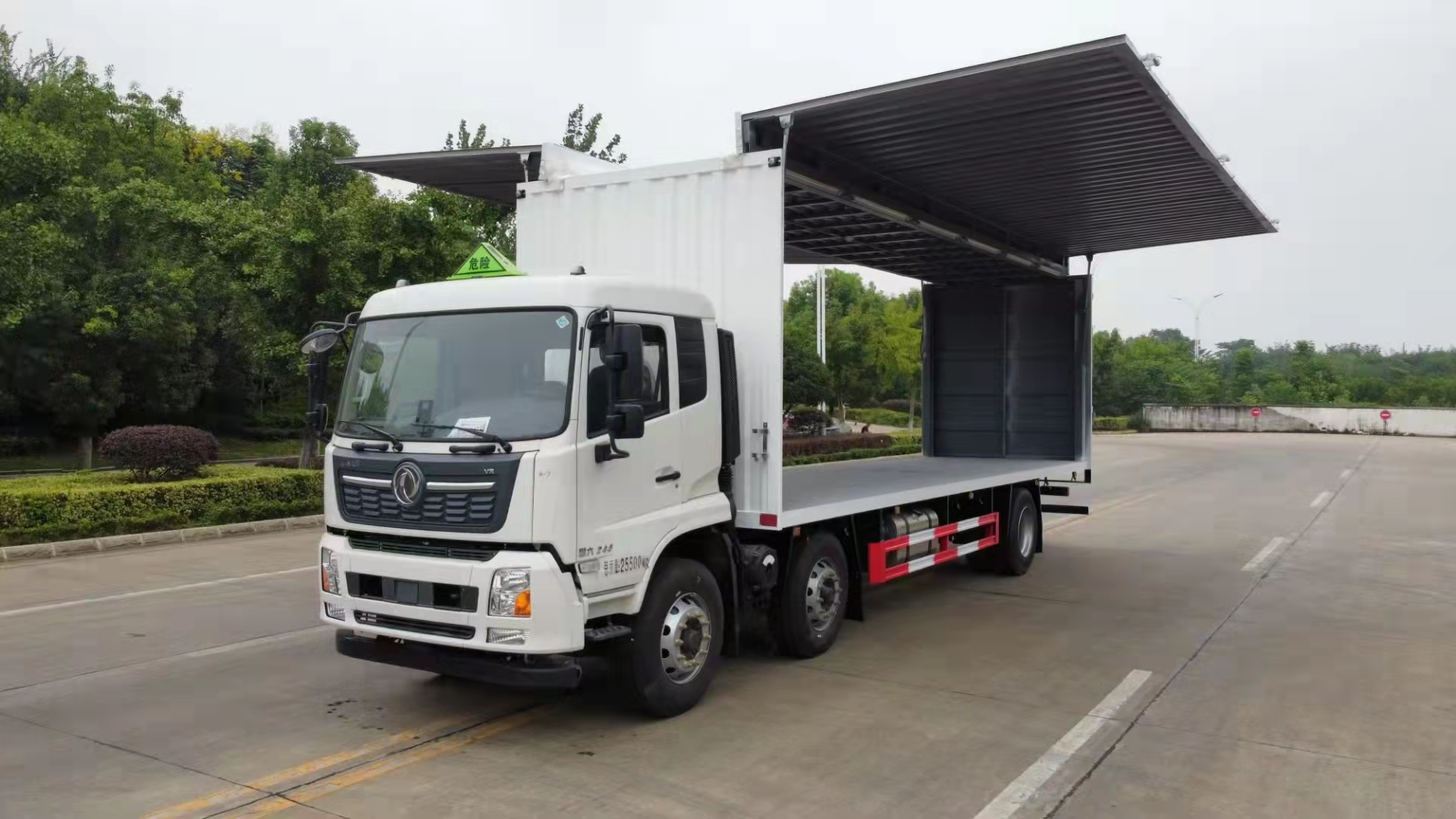 側面開門不方便,選擇電控翼展更不一樣。為了讓客戶使用車輛更省心,我司新推出了一款三軸額載15噸的危險品車,重點是的目前獨有的天錦三軸能做到9米廂長的車型。為了發揮車輛更大的優勢,程力專汽推薦了天錦三軸雜項帶電控翼展危險品廂式運輸車,詳細配置如下: