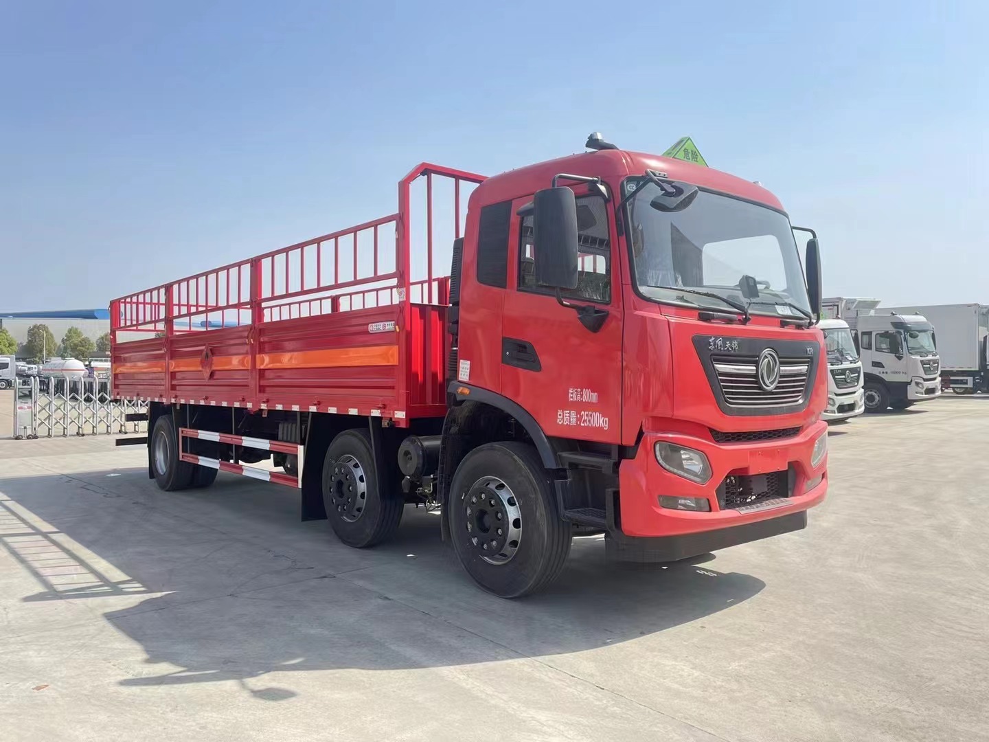 | 專用功能說明 | ABS型號/生產(chǎn)廠家:3631010-C2000/東科克諾爾商用車制動系統(tǒng)(十堰)有限公司.選裝EBS,EBS型號/廠家:EBS5/東科克諾爾商用車制動系統(tǒng)(十堰)有限公司;限速裝置限速(km/h):80;安裝有具有衛(wèi)星定位功能的行駛記錄儀;選裝后部無尾板,隨底盤選裝駕駛室.該車型可選裝ETC車載裝置.發(fā)動機/油耗值(L/100km)對應關系為:B6.2NS6B230/36.1,B6.2NS6B245/36.1;側(cè),后防護材料均為Q235,側(cè)防護螺栓連接;后防護焊接,截面尺寸120×50mm,下邊緣離地高480mm.液壓升降尾板收起狀態(tài)水平長度為290mm,尾板質(zhì)量為550kg;運輸**容器(瓶)包裝的貨物;危險貨物類項號:2.1,2.2;其他說明:該車為危險貨物運輸車.僅選用排氣管前置,限速裝置,前輪盤式制動及子午線輪胎的底盤.后軸采用空氣懸架.轉(zhuǎn)向輪安裝輪胎爆胎應急防護裝置;該車僅選用軸距(mm):1995+4200,1995+5000.整車外形長/軸距/后懸(mm)對應關系為:11080/1995+5000/2655,10180/1995+4200/2555。廂體選裝無柵欄,選裝柵欄樣式,選裝貨箱箱板結(jié)構(gòu)。選裝后處理隔熱罩。 | ||