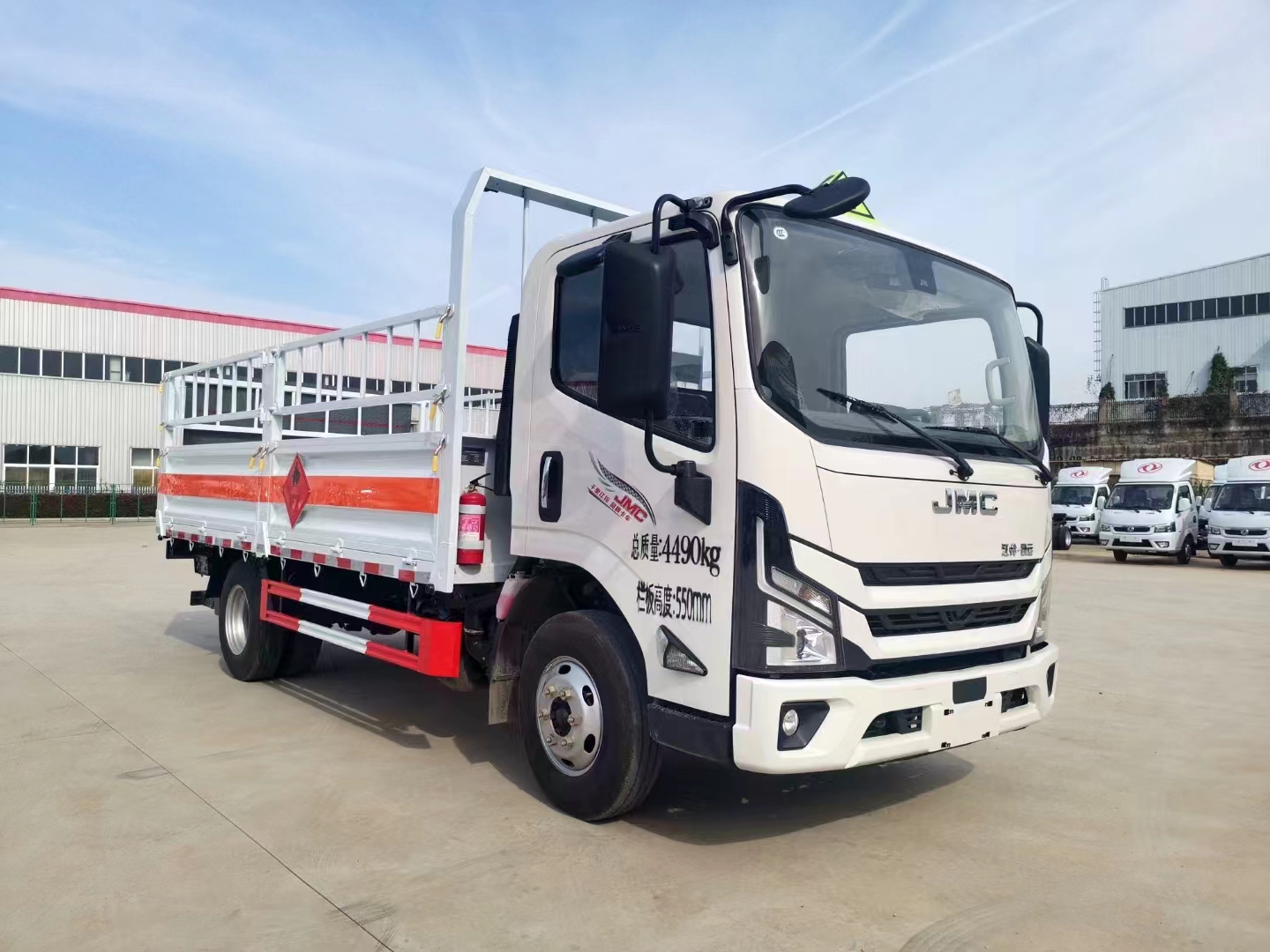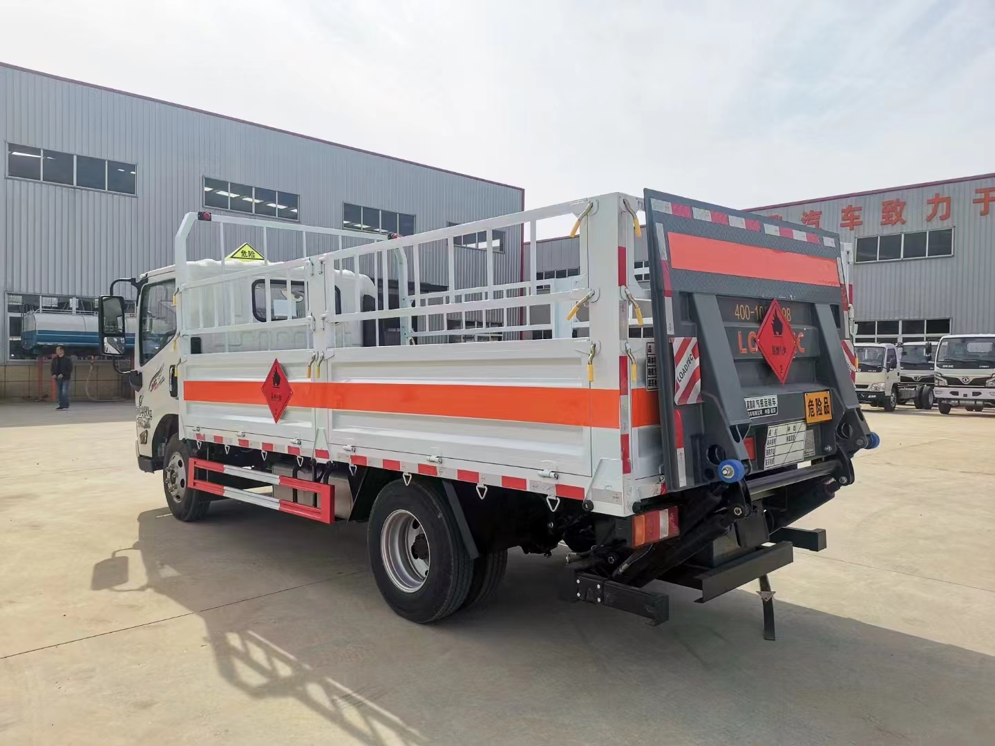 該車為危險品運輸車,運輸獨立容器(瓶)包裝的貨物;危險貨物類項號:2.1,2.2;運輸易燃氣體時掛2.1類警示牌,運輸非易燃無毒氣體時掛2.2類警示牌;僅選用3360mm軸距;發動機/油耗申報值(L/100km)對應關系為:D25TCIF1/10.69,D25TCIF5/10.66,JX4D25B6H/10.24,JX4D256H/10.51,JX493ZLQ6F/10.32;側防護材質為Q235,螺栓加焊接連接;裝有液壓尾板時后防護材質為Q235,焊接連接,斷面尺寸(寬×高):50×100(mm),離地高度:340mm;尾板收起狀態水平長度為280mm,尾板質量為350kg;選裝氣、液剎制動,氣剎ABS系統型號/生產企業:VIE ABS-II/浙江萬安科技股份有限公司,液剎ABS系統型號/生產企業:3550B500/浙江亞太機電股份有限公司;僅采用前輪盤式制動器,前置排氣管,子午線輪胎,靜電帶,限速裝置的底盤,限速80km/h;轉向輪安裝爆胎應急防護裝置; |