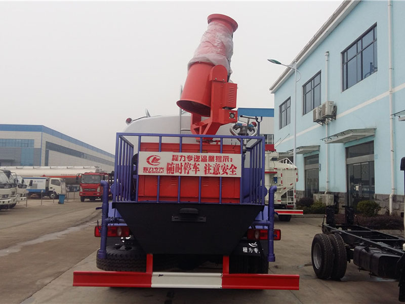 霧炮灑水車,又稱為多功能綠化灑水車。用于城市道路、大型廠區、部隊、園林等單位清潔路面、衛生、防塵、澆水、噴灑農藥等,以達到美化環境的作用。該車加裝風送式噴霧機組,可用于工地降塵,農場打藥等。灑水車由以下幾部分組成:專用車底盤、罐體、管道系統、操作系統。