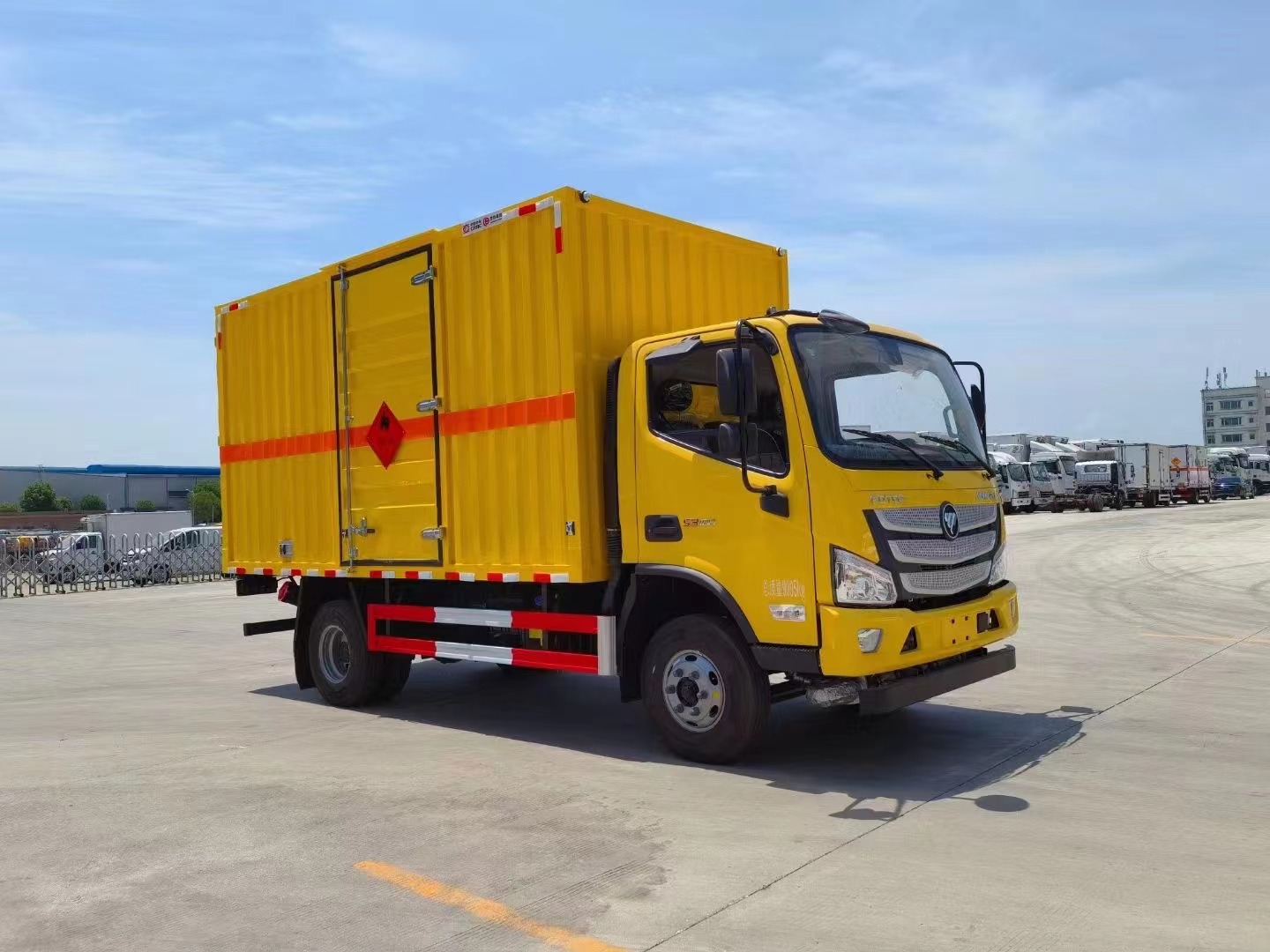 福田歐馬可小黃牌貨廂長(zhǎng)4.08米額載4.5噸易燃液體廂式運(yùn)輸車