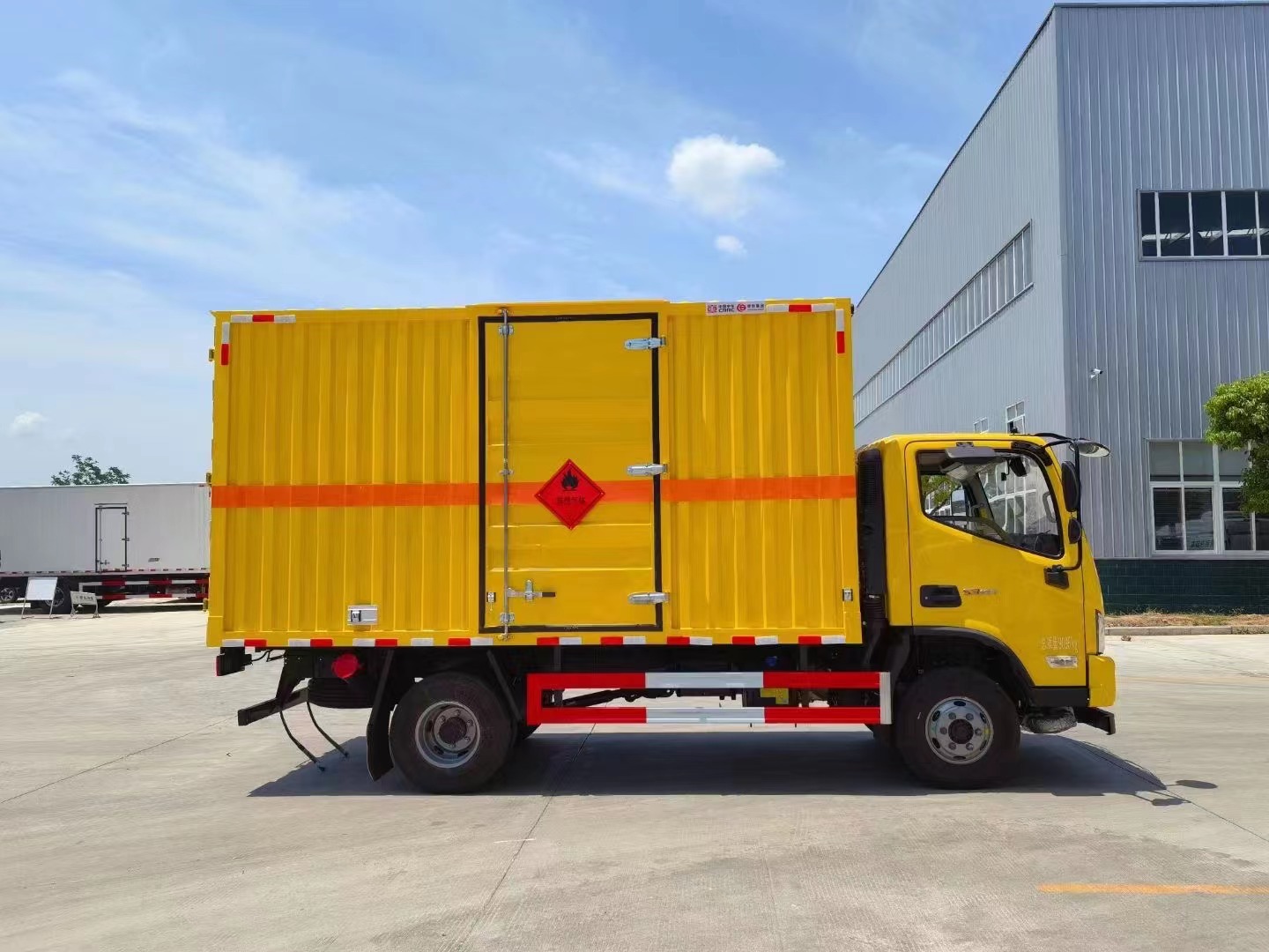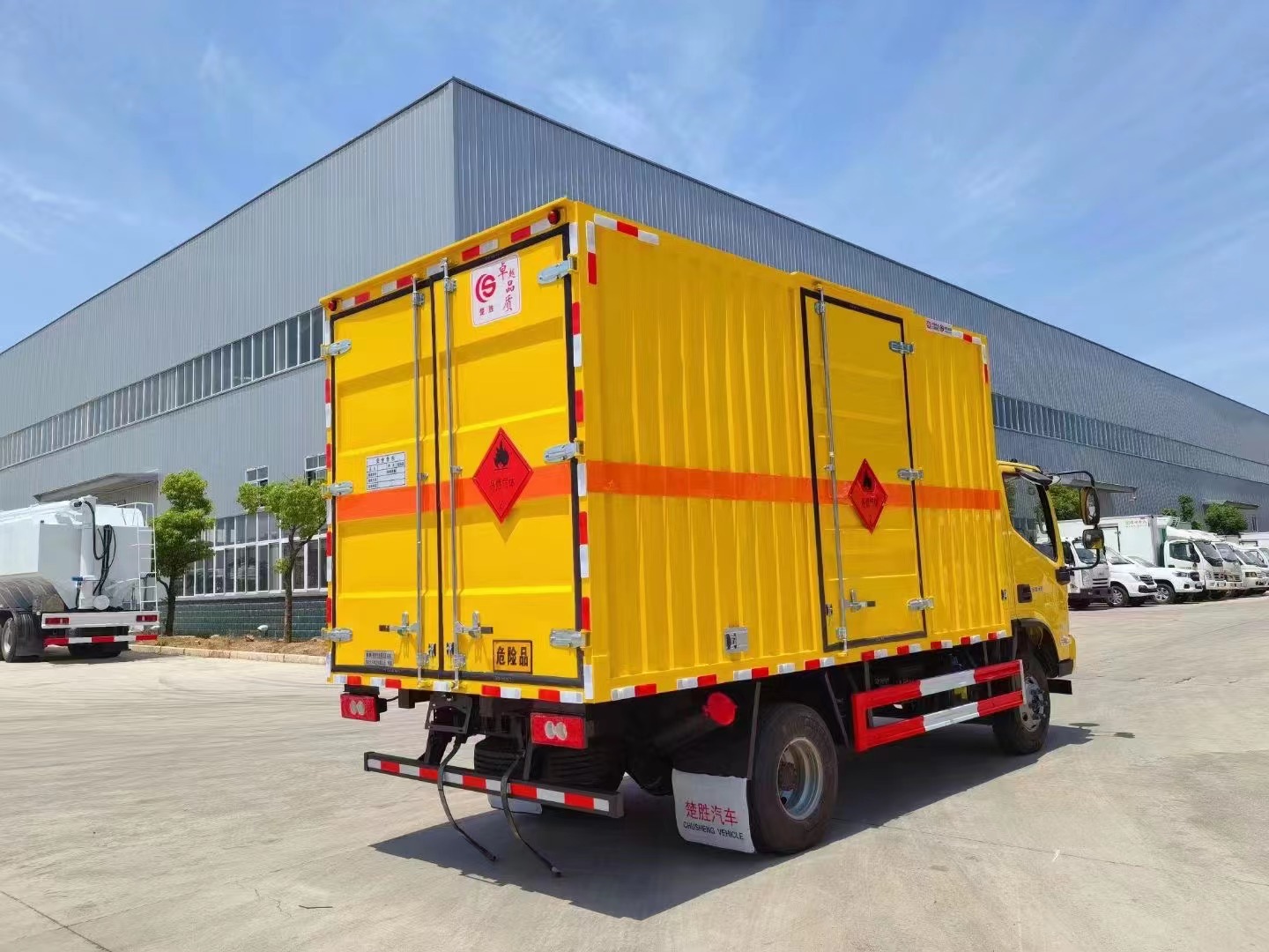 1,復(fù)合板工藝:嚴(yán)格按照公告尺寸制作。外板采用優(yōu)質(zhì)烤漆板(顏色可選:白,灰,檸檬黃)帶百葉窗,內(nèi)飾為導(dǎo)電性能良好的鋁平板有透氣孔,矩形骨架結(jié)構(gòu)內(nèi)部填充防火阻燃材料,復(fù)合加鉚合工藝。廂體四周鋁合金包邊及包角,車廂底板鋪設(shè)防靜電膠皮,廂體前臉50公分高鋪設(shè)防靜電膠皮。后部設(shè)置對(duì)開門,右側(cè)單開門,廂體內(nèi)部?jī)蓚?cè)安裝捆綁貨物的臥環(huán)。廂體內(nèi)部安裝煙霧報(bào)**器,門上安裝防盜報(bào)**器。車廂一周粘貼橙色反光帶,箱體粘貼菱形標(biāo)志牌,安全告示牌,危險(xiǎn)品牌,箱體安裝示廓燈(前白后紅),拖地靜電帶。