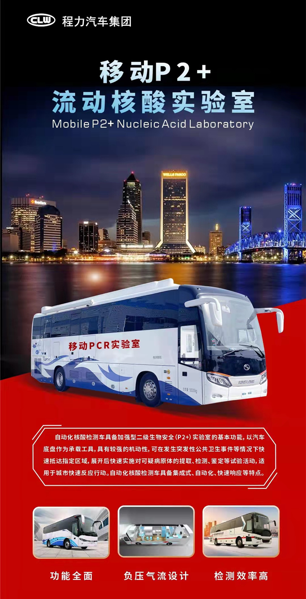 自動化核酸檢測車具備加強型二級生物安全(P2+)實驗室的基本功能,以汽車底盤作為承載工具,具有較強的機動性,可在發生突發性公共衛生事件等情況下快速抵達指定區域,展開后快速實施對可疑病原體的提取、檢測、鑒定等實驗活動,適用于城市快速反應行動。自動化核酸檢測車具備集成式、自動化、快速響應等特點。