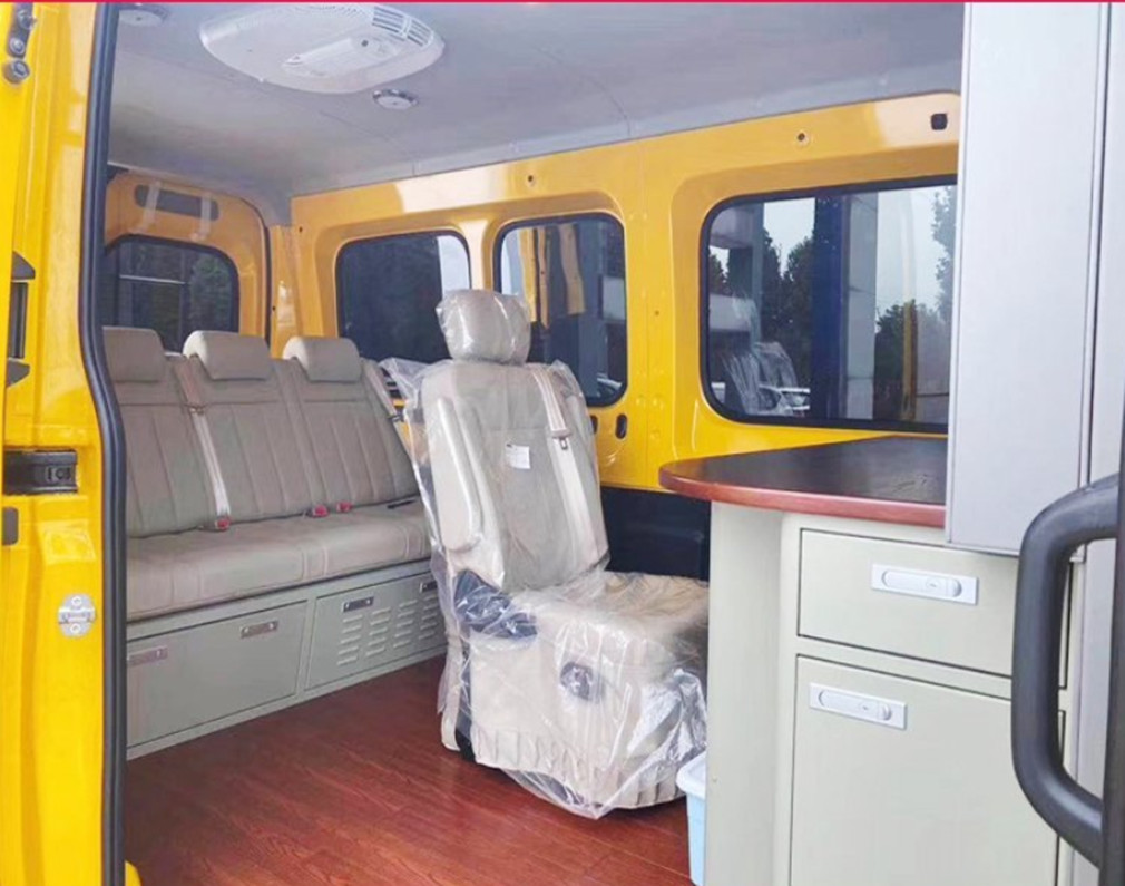 我公司生產的上汽大通通信指揮車基于大通SH6591A2DB底盤改裝,該底盤變速箱為手自一體變速箱,最高車速150km/h,發動機型號為SC20M139Q6,發動機排量:1996ml,排放國VI標準。通信指揮車以大通SH6591A2DB底盤作為改裝平臺,保證工作人員擁有寬敞舒適的工作環境,并且為系統的運行和維護提供符合技術要求的環境條件。在保持整車優良性能的前提下對車輛進行改裝而成,實現符合用戶使用要求的工作環境、使用功能而量身定制的特種專用車輛。通信指揮車具備通信組網功能和指揮通信與情報信息采集功能。通過高清晰、低照度車載云臺攝像機,可實現全天候、多方位、大范圍的現場監控功能。通過車載硬盤錄像機,可以對現場的情況進行適時錄像、錄音記錄,以便日后進行調查,并可通過USB接口及數據端口與其他存儲設備相連接,進行現場刻錄,便于錄像資料的及時、有效保存。車載液晶電視可集中顯示系統采集到的信息,便于領導實時掌握事發現場的各種情況,可以及時指揮調度,正確決策。