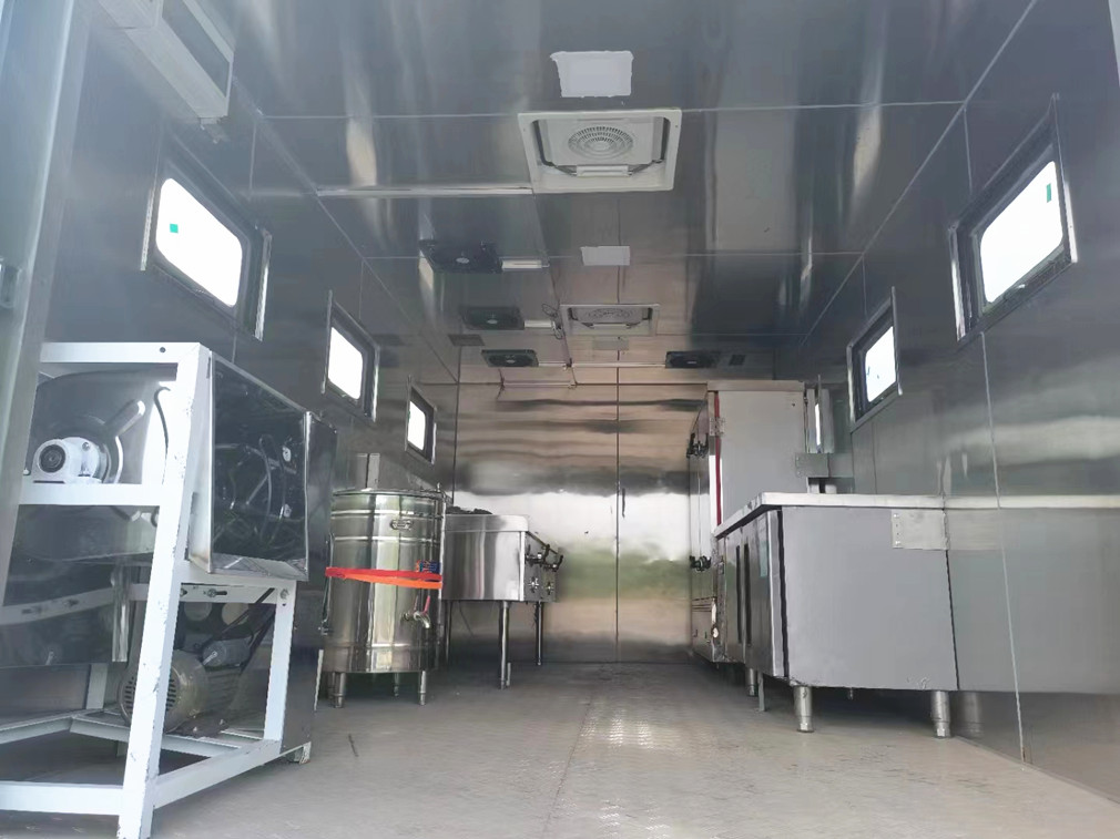 1.ABS型號/廠家:3631010-C2000/東科克諾爾商用車制動系統(十堰)有限公司;2.隨底盤選裝駕駛室,選裝不同結構廂體;3.側,后防護材料均為Q235,側,后防護均采用焊接連接,側,后下部防護裝置均為整體式裙板結構,后下部防護離地高度:500mm;4.車廂頂部封閉且不可開啟;5.該車用于烹飪食品,餐飲加工的野外自行式炊事作業,廂內內部設備有炊具,灶臺,冰柜等. |