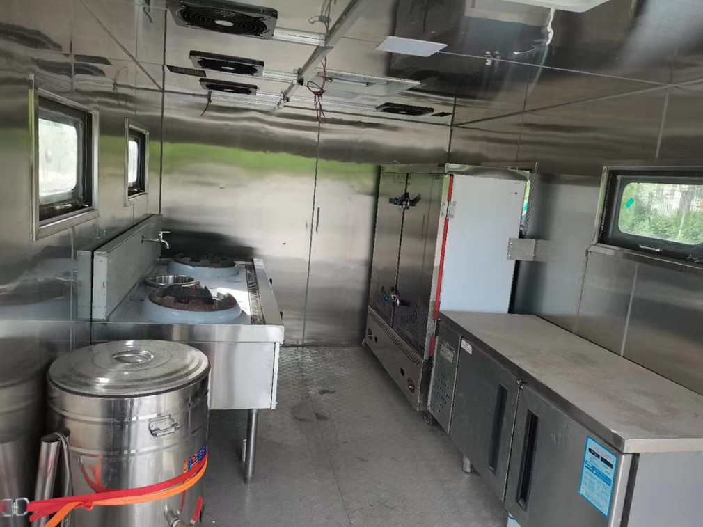 東風六驅野外自行式炊事車的上裝空間充足,可以安裝各種廚房用具以及供水系統與供電系統,不管是承載能力和舒適性都能滿足現在車友的需求;這種野外自行式炊事車是一個移動式廚房,另外車輛的自重低,所以自身的承載力也會更強,從而創造出更大的利益。