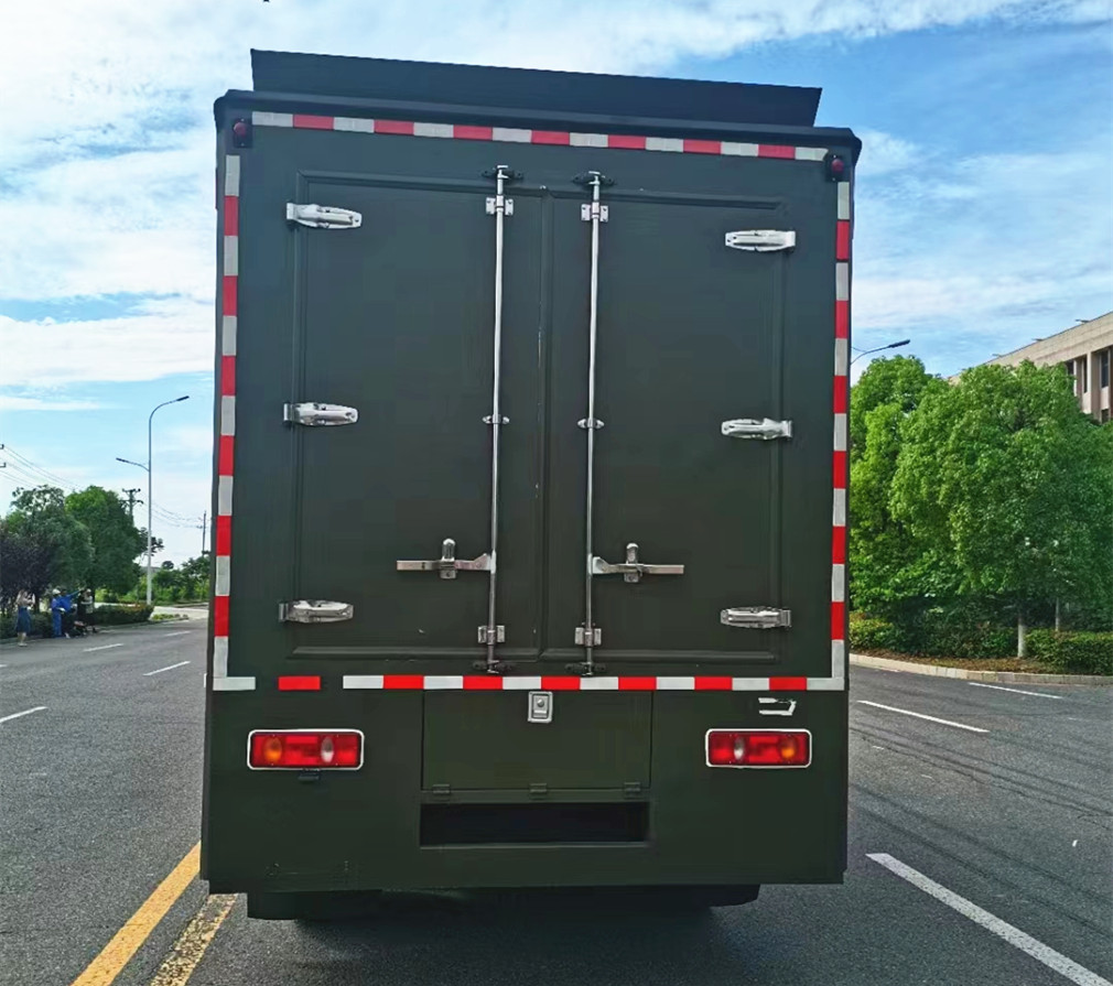東風六驅野外自行式炊事車整車尺寸為7850×2460,2500×3670(mm),自重9155,9220kg,能乘坐3,2人,在上裝部分還添加了電源插座、電表、揚聲器等,功能齊全,全方位方便售賣活動。底盤采用東風商用車新疆有限公司生產的東風天錦DFV2163GP6DJ1越野汽車底盤,滿足了國家規定的排放標準,達到了上戶需求,搭配東風康明斯發動機有限公司生產的B6.2NS6B210發動機,性能優越。另外出廠時配有底盤合格證、整車合格證、全國統一機動車輛發票、隨車工具、車輛質保手冊、全國服務站名錄等。