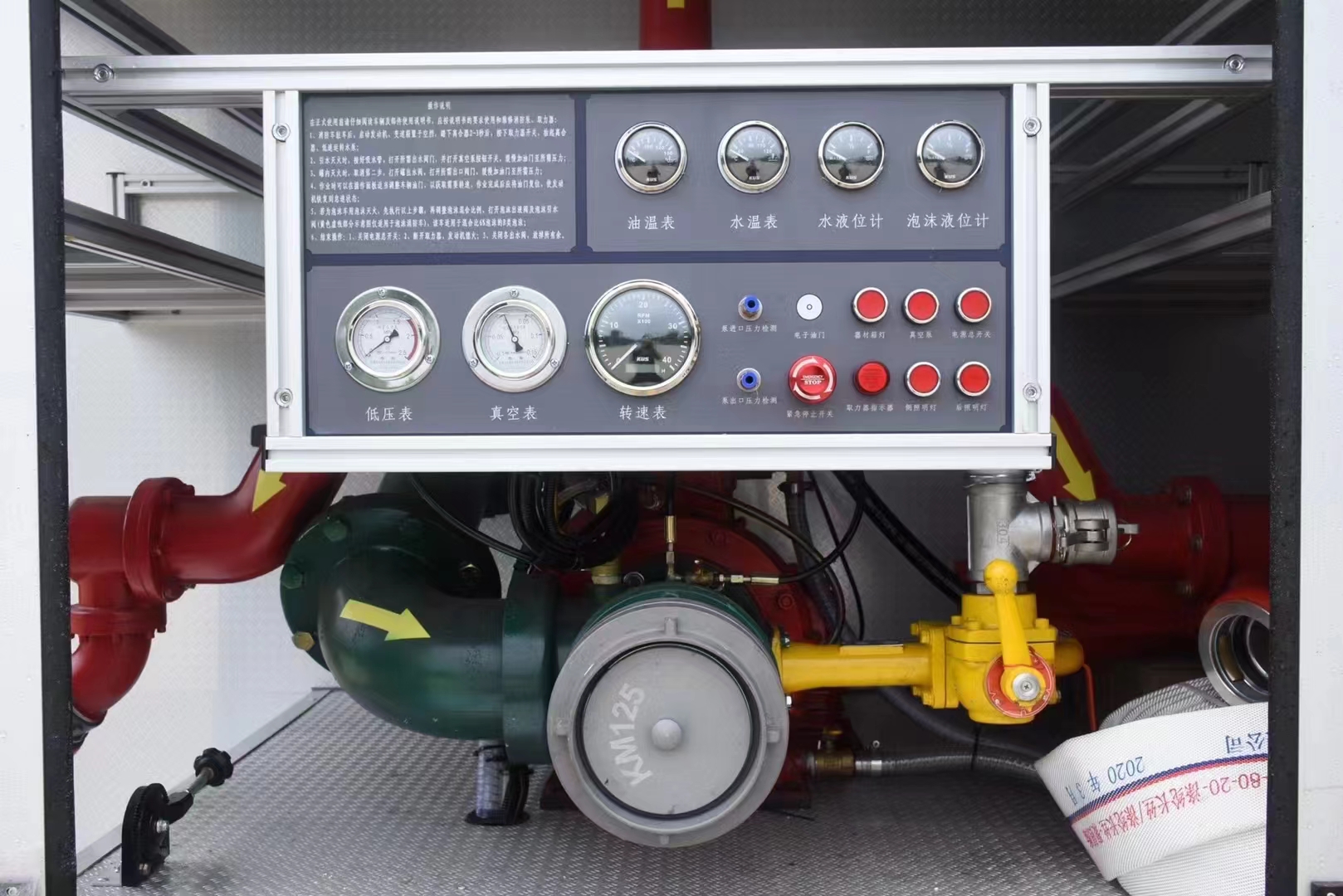 駕駛室內(nèi)設(shè)備:除原車設(shè)備外,加裝取力器控制開關(guān)、100W警報器、警燈開關(guān)等。