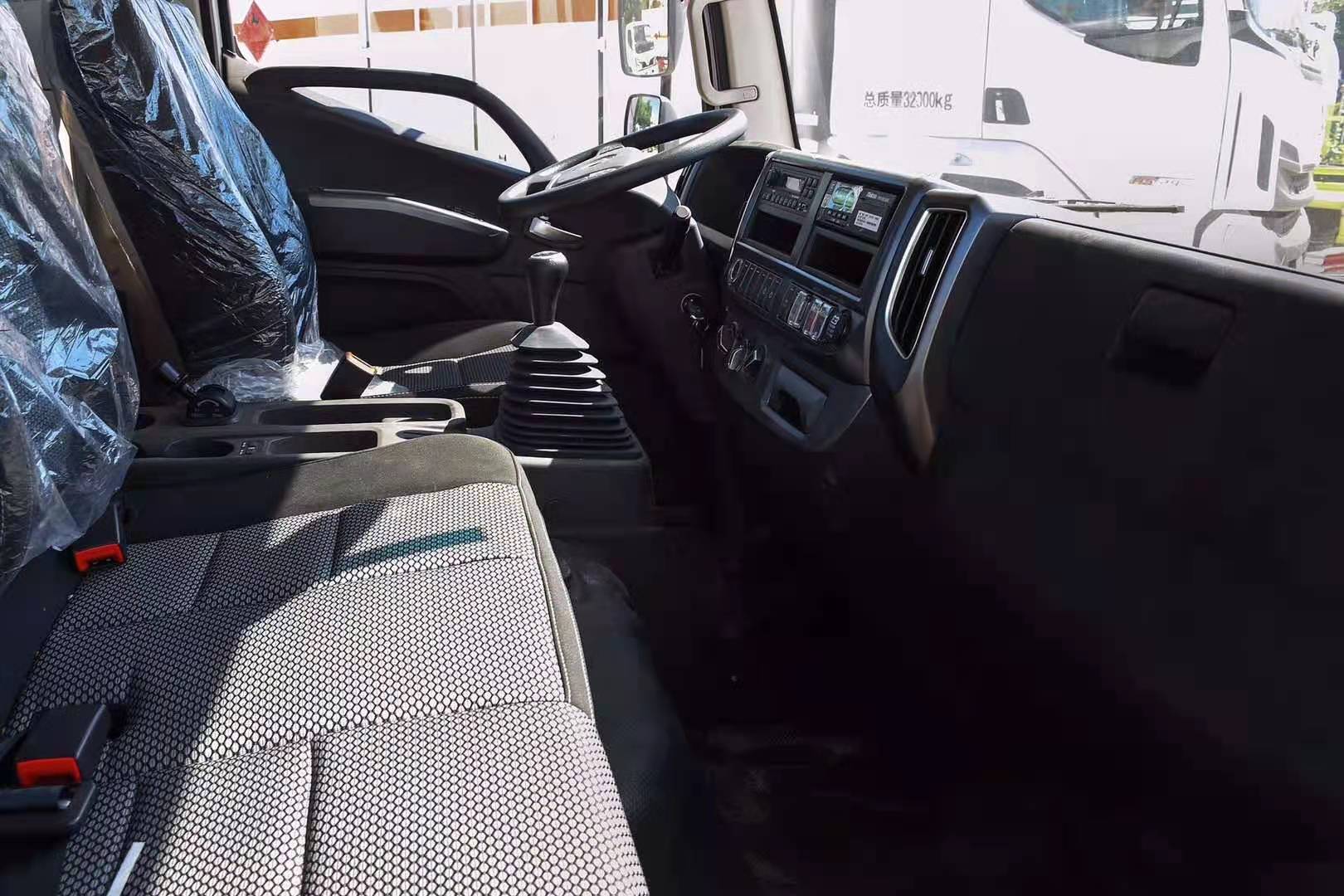 底盤配置:底盤采用福田公司生產的歐馬可原裝底盤,3800mm軸距、福田康明斯發動機(156馬力國六排放)、9.5R17.5 16PR真空輪胎、助力、斷氣剎、前置排氣管、新款可前翻轉排半駕駛室、前盤制動/限速裝置/ABS/行車紀錄儀;